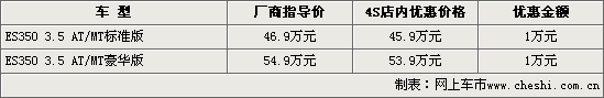 雷克薩斯于日前相繼對旗下的IS、ES與RX等多款車型的配置進行了全面提升,并對指導價格做出了相應的調(diào)整。近日,在北京地區(qū)的雷克薩斯4S店內(nèi),ES目前在售的老款車型的優(yōu)惠金額已過萬元。以下是我們在北京4S店內(nèi)了解到的價格: